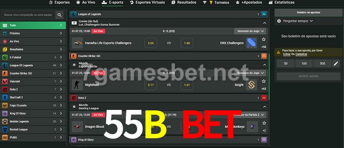 O 55B Bet oferece uma grande seleção de opções de apostas em e-sports com probabilidades competitivas